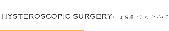 | Q:子宮鏡下手術とは? | 子宮鏡下手術とは、子宮の中に細いカメラ(子宮鏡)を入れ、中の様子をテレビモニターで見ながら行う手術方法です。 お腹を切らないため、手術後の痛みも少なくてすみます。 |